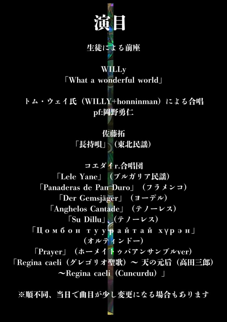 ※Tenores de Tokyoとして出演。サルデーニャの伝統的男声四部合唱を歌唱